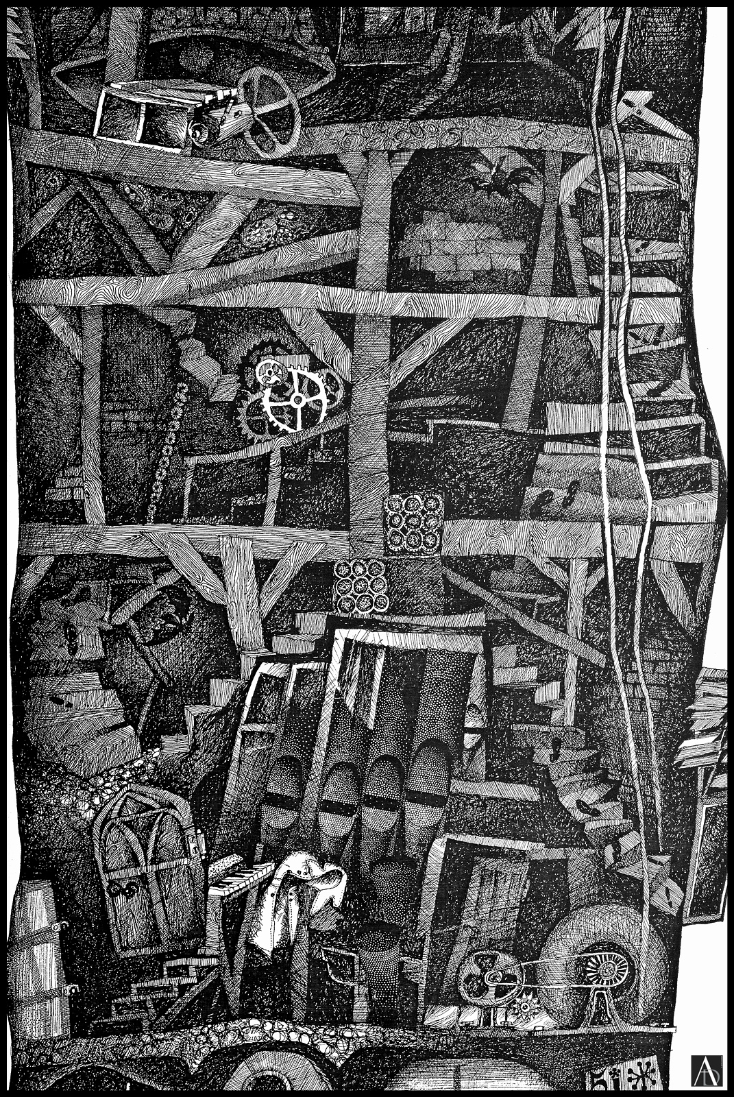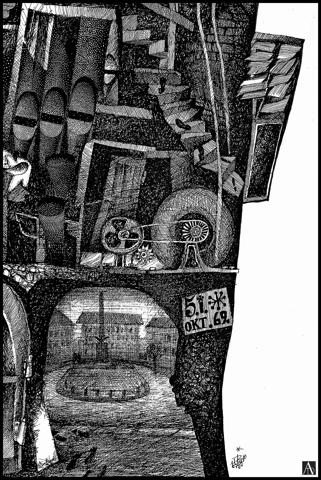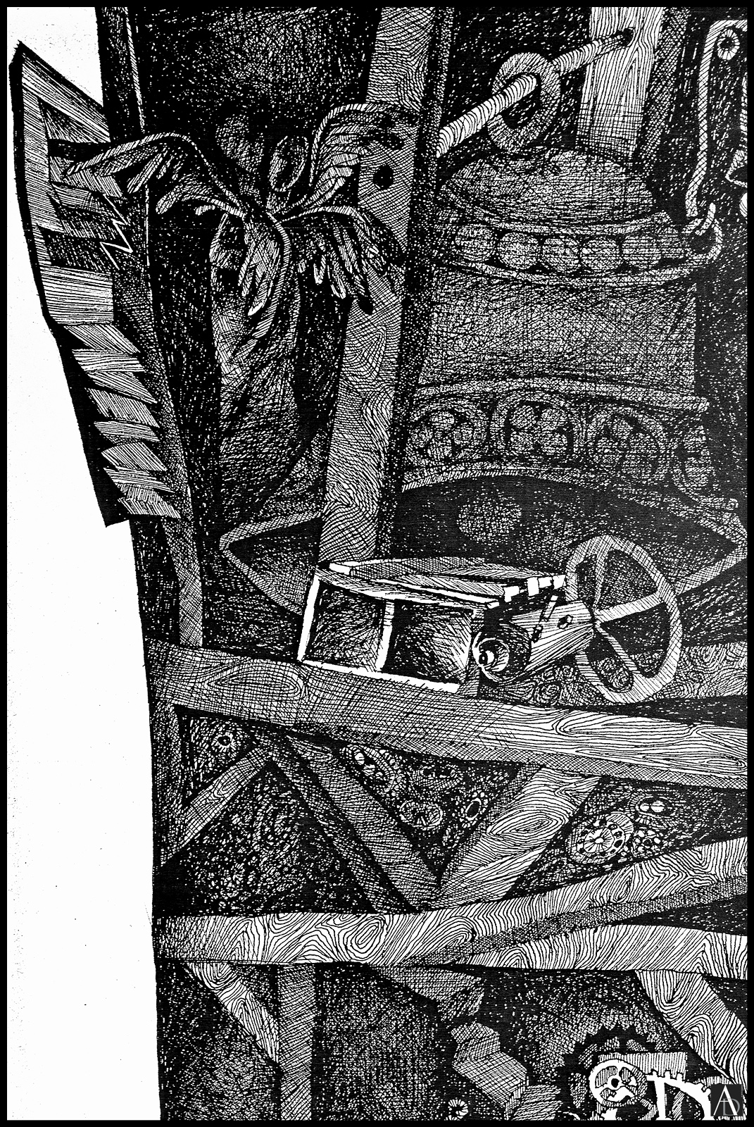 Graphic, pen drawing with Chinese Ink on paper – (40.5 x 64.0 cm)