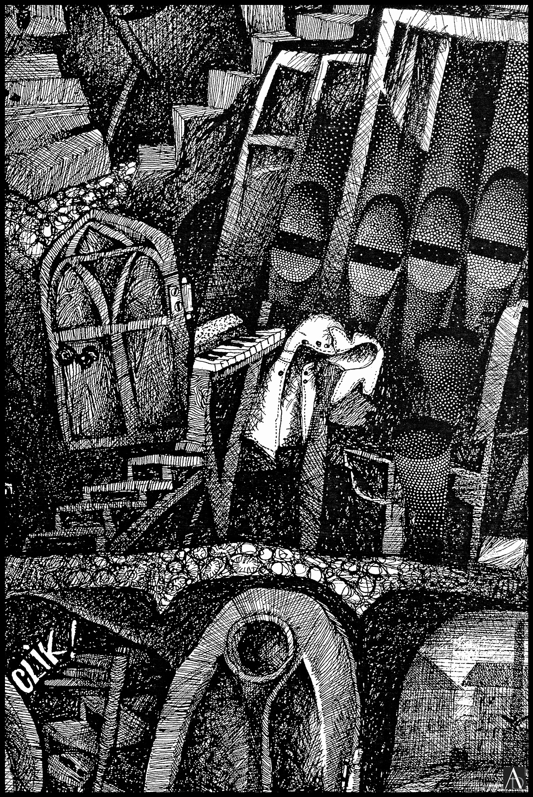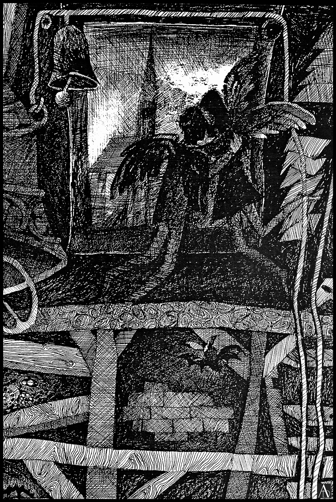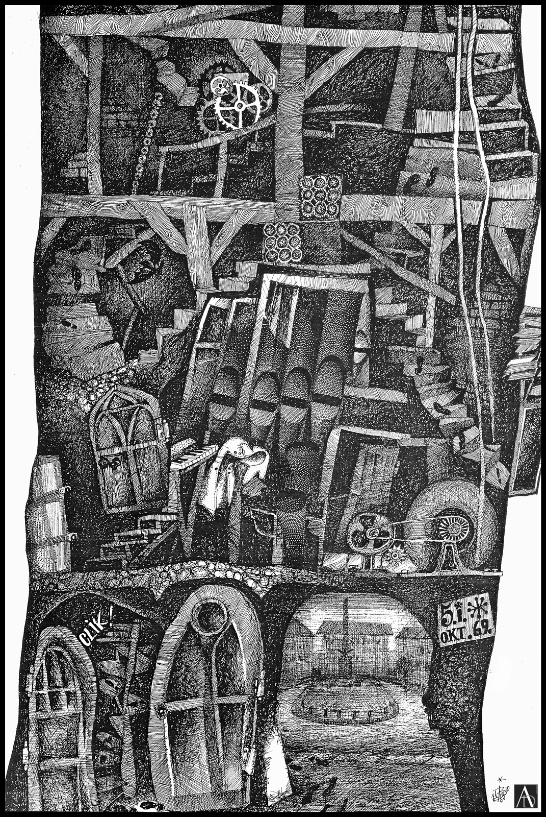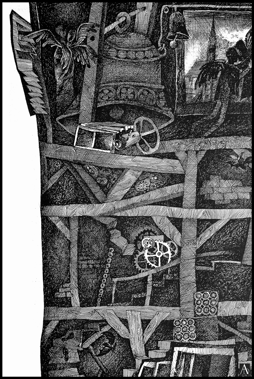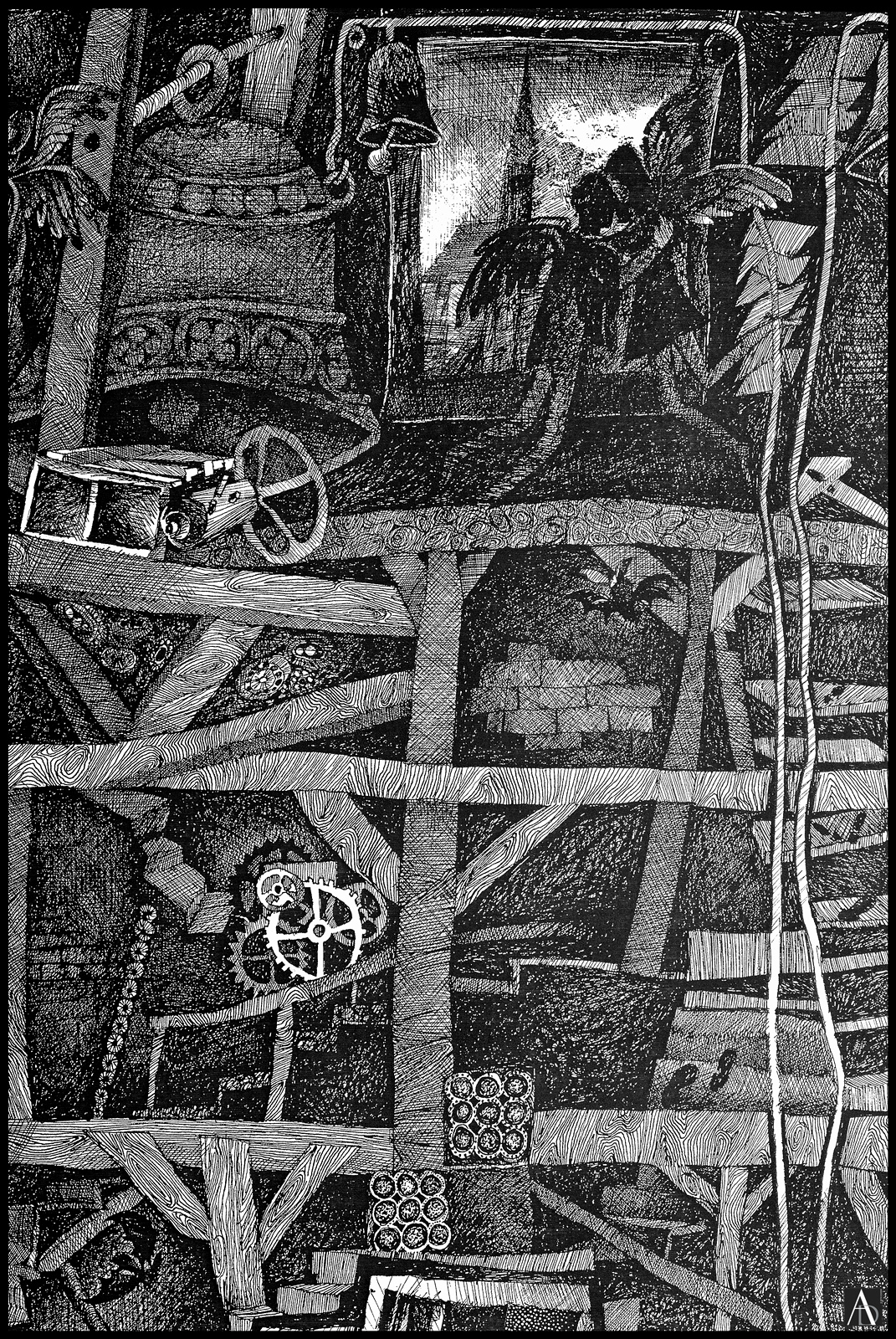 JOHANN A.G. BALOGHY – 26. Tower of Angels (Detail) – Franciscan Church, the illustration of a story – 1969 – Romania – Graphic, pen drawing with Chinese Ink on paper