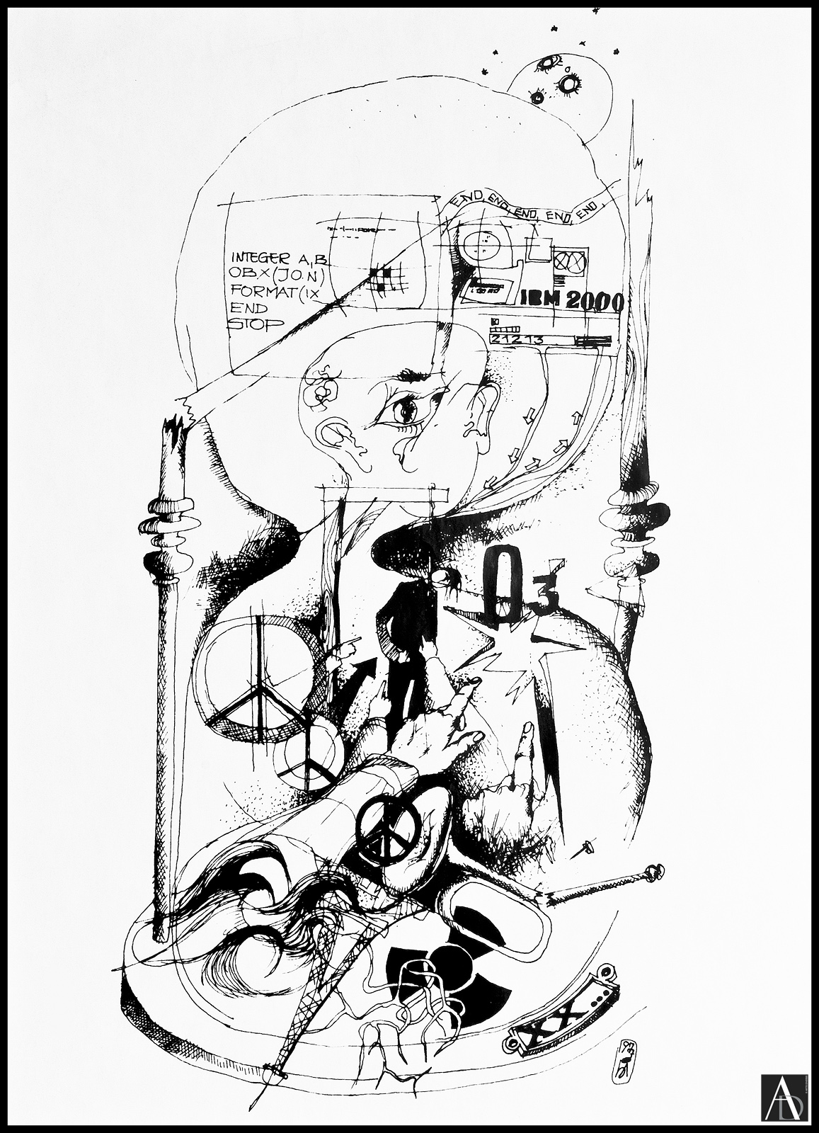 Graphic, the illustration of a story. Graphic, pen drawing with Chinese Ink on paper – (33.5 x 48.0 cm)