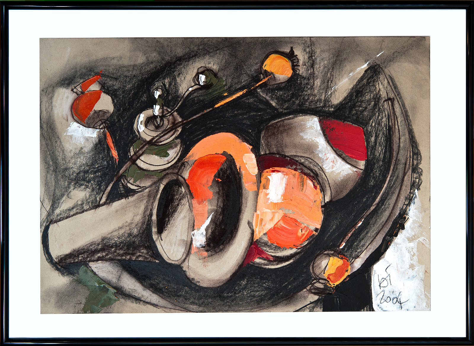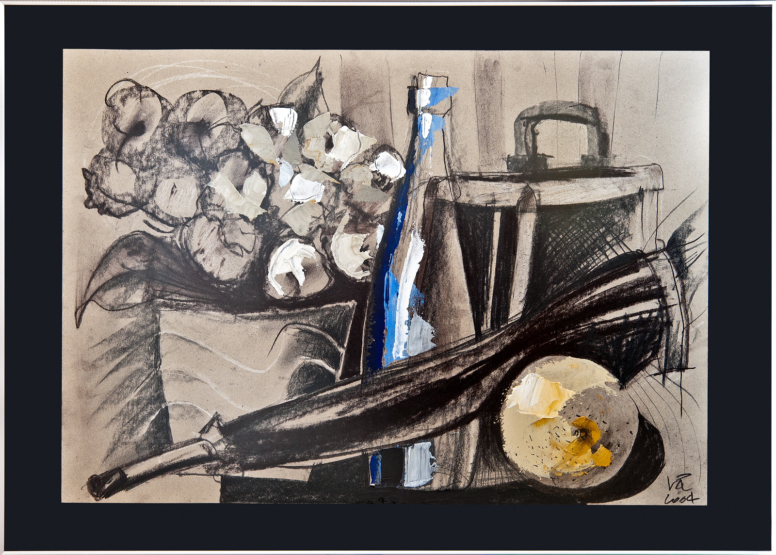 JOHANN A.G. BALOGHY – 6. The visit, Still Life – 2004 – Germany – 59/41 cm – mixed technique, charcoal and acrylic, on cardboard