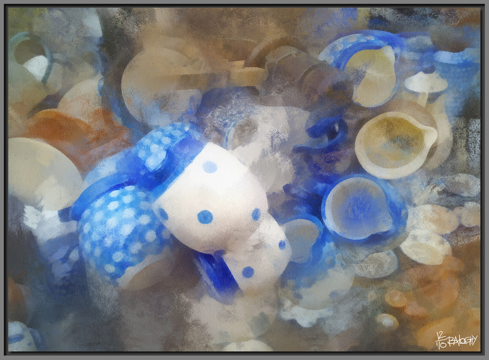 JOHANN A.G. BALOGHY – 5. Hommage à Vellasquez, Still Life – 2004 – Germany – 59/41 cm – mixed technique, charcoal and acrylic, on cardboard