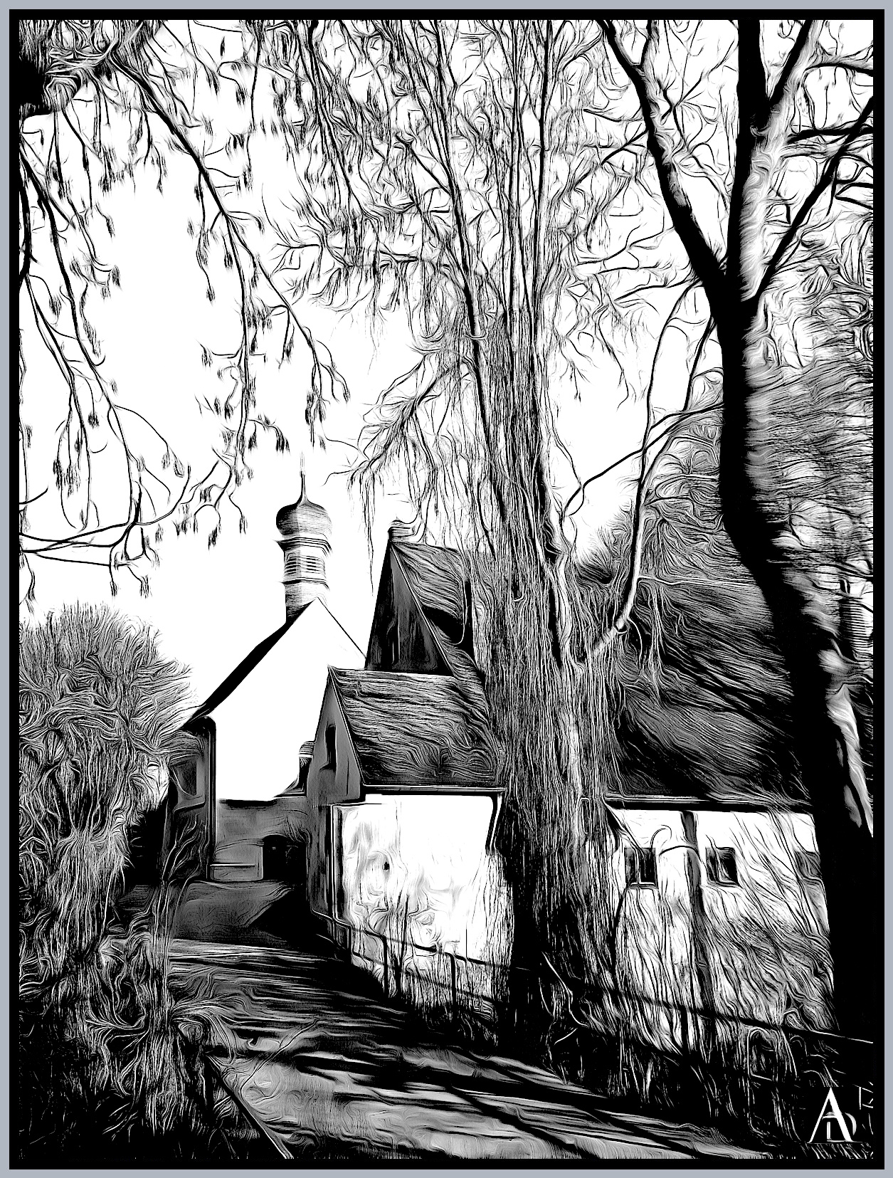 Graphic, pen drawing with Chinese Ink on paper – (40.5 x 64.0 cm)